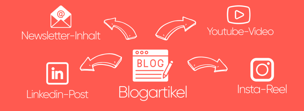 - Content-Creation: Je nach Zielgruppe und Thema braucht es mehrere Content-Formate mit der gleichen Botschaft. Recyclen Sie erstellte Beiträge und nutzen Sie sie auf mehreren Kanälen.